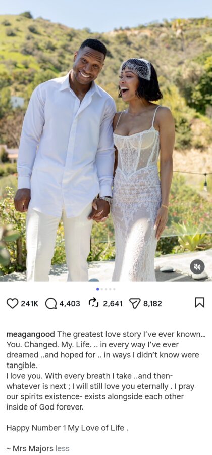 Meagan Good is celebrating her first wedding anniversary with actor Jonathan Majors.