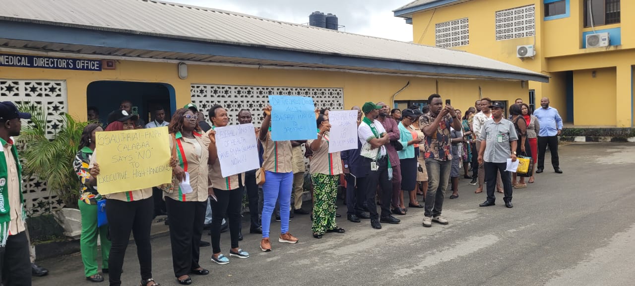 Staff of the Neuro-Psychiatric Hospital in Calabar, Cross River State, on Monday staged a protest against the Acting Chief Medical Director (CMD), Dr. Theophilus Osim, accusing him of disobeying a directive from the Federal Ministry of Health to begin the process of appointing a substantive CMD.